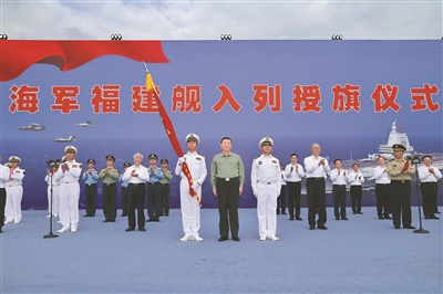 我國(guó)第一艘電磁彈射型航空母艦入列 習(xí)近平出席入列授旗儀式并登艦視察